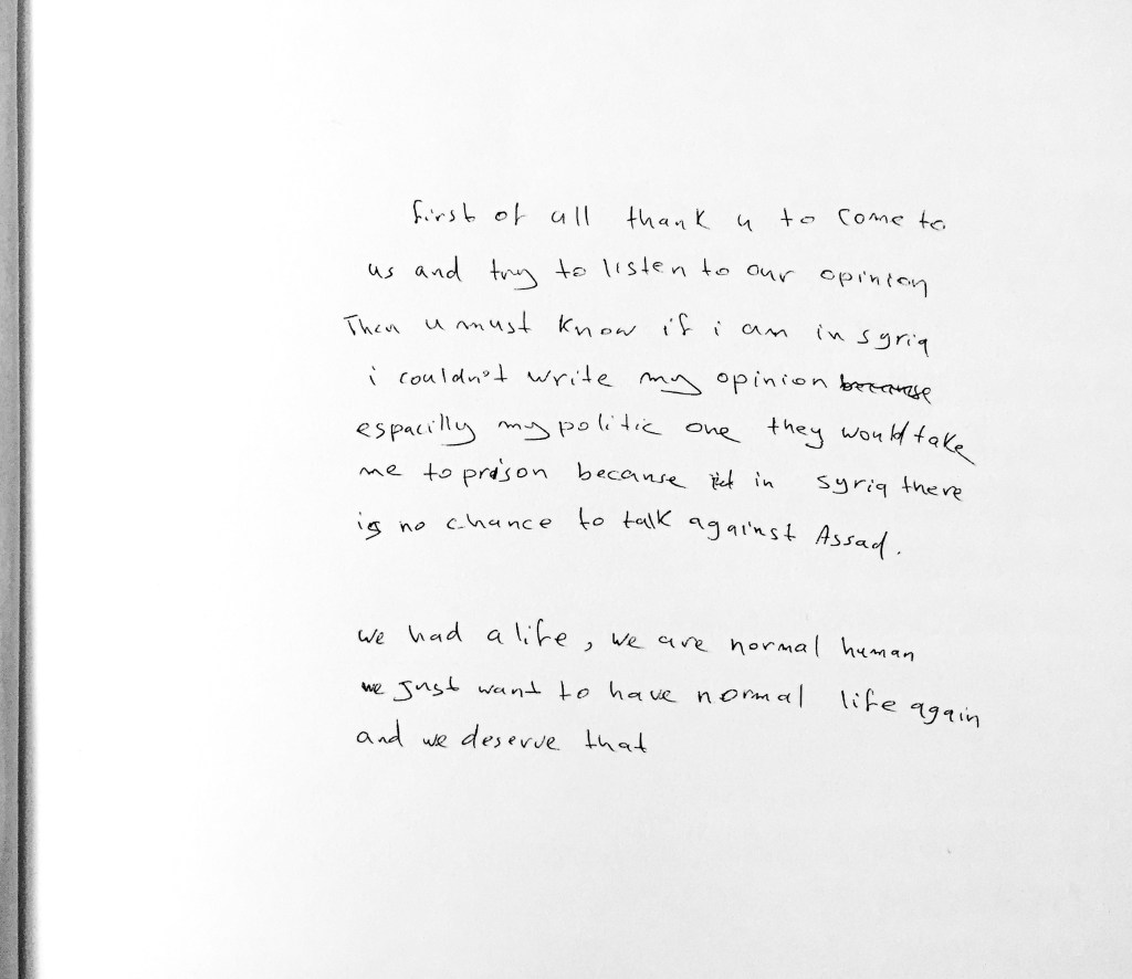 (‘The Fortune-Hunter’) For this book I went to visit a refugee center in Groningen to interview refugees from Syria. In De Gelukzoeker their stories are printed on a see-through page to be put into contrast with negative opinions and statements about refugees found on social media.