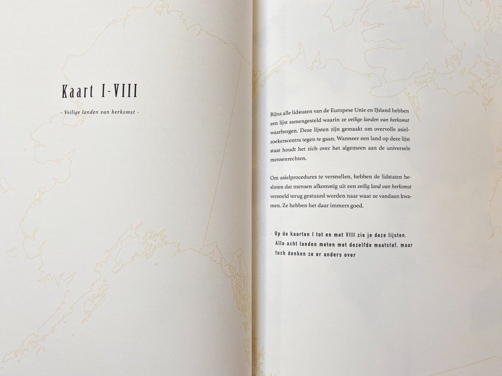 This project started after analysing a list made by the Dutch authorities called ‘Safe Countries of Origin’: a list that is supposed to determine if refugees (or ‘asylum seekers’) are entitled to a residence permit. This book puts into perspective many other reasons for someone to leave their home and hopes to make us realise how fortunate people in countries of the ‘Perfect World’ are.